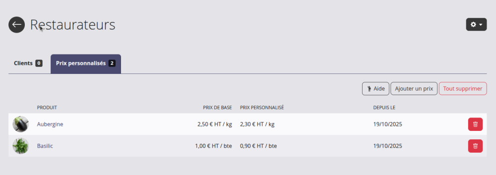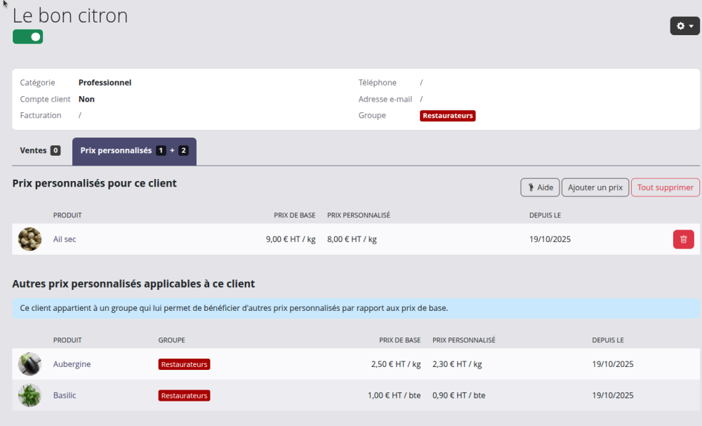 Jusqu'à présent, vous pouviez personnaliser la grille tarifaire de vos clients professionnels uniquement.