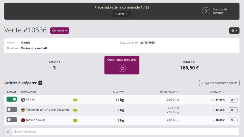 Nous avons ajouté un mode de préparation de commande sur Ouvretaferme, pour vous faciliter le conditionnement des paniers.