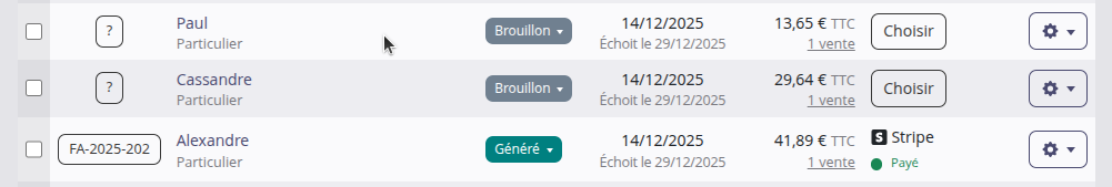 2. Vous pouvez maintenant créer des factures à l'état de brouillon