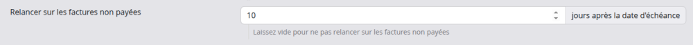 Le délai à respecter avant d'envoyer une relance est renseigné par défaut à 7 jours après la date d'échéance. C'est bien sûr paramétrable :