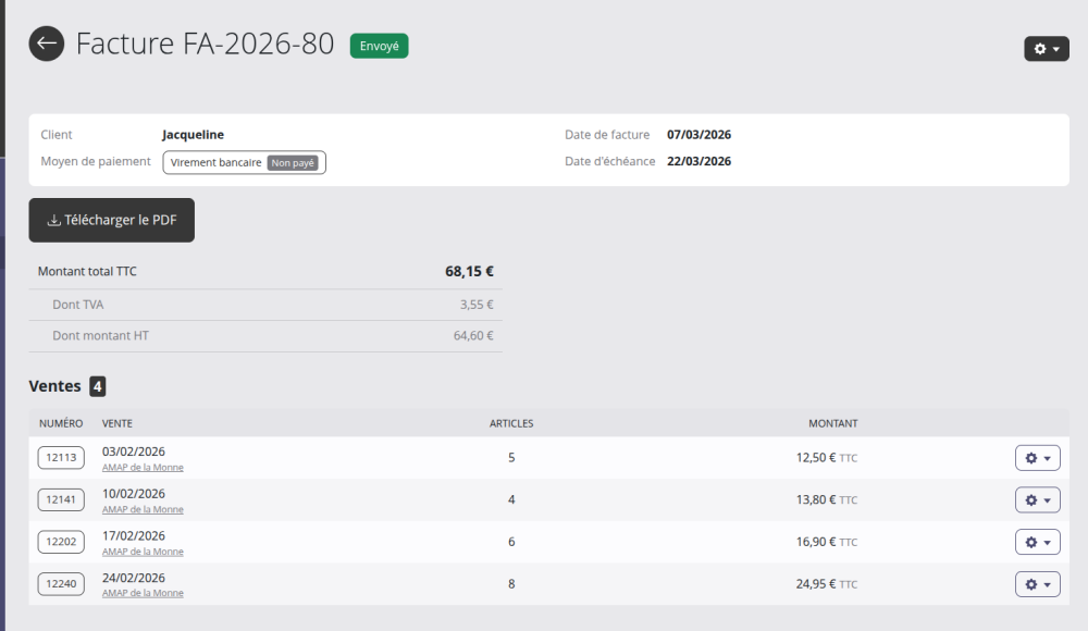 Une page dédiée aux ventes réalisées avec le logiciel de caisse