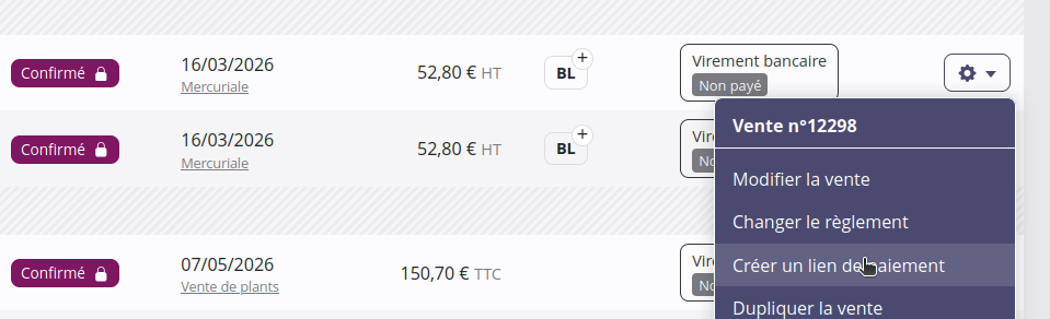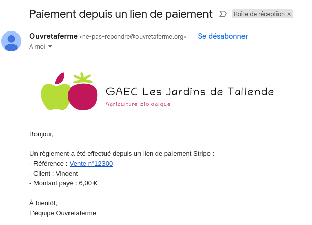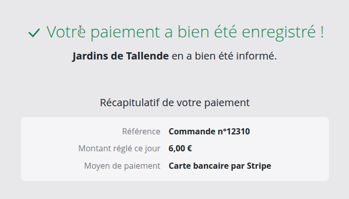Lorsque le client a réglé par carte bancaire, vous recevez un e-mail de confirmation, le client également, et le paiement est automatiquement ajouté à la vente ou la facture.