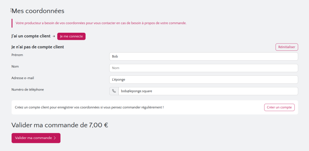 Les informations (nom, prénom, adresse e-mail, téléphone) sont gardées en mémoire et le client n'a pas à les ressaisir quand il repasse commande depuis le même terminal