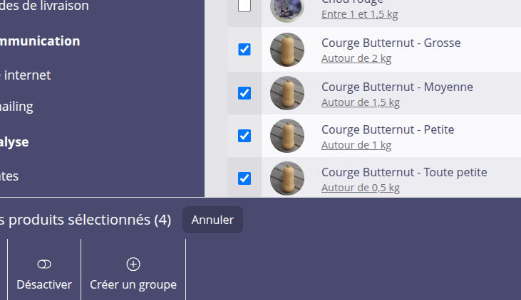 C'est désormais possible sur Ouvretaferme avec les groupes de produits. Vous pouvez créer des groupes de produits directement depuis vos catalogues
