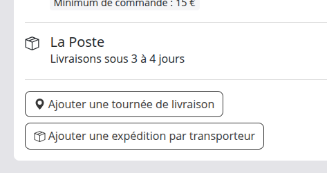 Il est désormais possible de configurer des modes de livraison par transporteur. L'affichage est optimisé pour les clients. Ouvretaferme ne gère pas l'expédition pour vous.