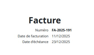 Ainsi, si par exemple votre dernière facture de 2025 était FA-2025-154, votre première facture de 2026 sera FA-2026-1.